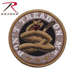 The Wholesale Distributor by Rothco Round "Don't Tread on Me" Morale Patch features a snake with the embroidered text "Don't Tread on Me" around the image. The patches feature a hook backing which makes it ideal for attaching to our Special Ops Jackets, Transport Packs, Tactical Vest and more. Patches with the item # starting with ‘P’ are individually packaged with a header card.