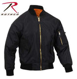 Wholesale Distributor by Rothco has taken it classic MA-1 Flight Jacket and streamlined it into a lightweight no fill, bomber style jacket that is perfect for spring and fall. The flight jacket features a super soft enhanced nylon fabric that is also water repellent (outer fabric passed hydrostatic water pressure test) with a matte finish. In keeping with the timeless style of the MA-1 jacket, the coat is equipped with a fully reversible rescue orange lining and left arm utility pocket. The bomber jacket also features two front slash pockets with snap down flaps, two inside slash pockets with snap closure, ribbed knit collar, cuffs and waistband, and brass zippers with leather pull-tabs.