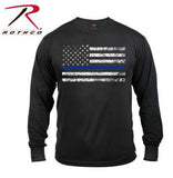 The Thin Blue Line is a symbol of respect and support for Police and Law Enforcement Officials; show your support with the Wholesale Distributor by Rothco Thin Blue Line Long Sleeve T-shirt. Featuring a soft cotton/polyester blend and a tagless label for comfort. The long sleeves will keep you warm and the t-shirt is printed with a distressed Thin Blue Line US Flag design centered on the front.