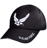 Wholesale Distributor by Rothco US Air Force Wing Mesh Back Tactical Cap features a raised embroidered Air Force lettering and ribbon on front panel. The tactical baseball style cap features 4 mesh panels and 2 reinforce air vent holes for maximum breathability and comfort. The Air Force Cap is one size fits most and fully adjustable with a hook and loop closure at the back.